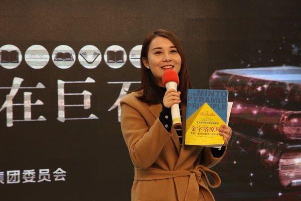 三名選手為這場讀書分享會做了大量前期準備,現(xiàn)場通過視頻向觀眾展示了選手在日??磿喿x的良好面貌、與導師在決賽前的積極討論的狀態(tài),營造了腹有詩書氣自華的閱讀氛圍。陳果用“聆聽”告訴大家怎樣處理與同事、上級的說話方式;張凱橙用自身體驗來傳遞如何提高質量管理;劉宇哲聲情并茂地與在場觀眾互動,在交流中分享書中精髓。好書推薦環(huán)節(jié),特邀嘉賓徐丹帶來《金字塔原理》一書,并對現(xiàn)場選手表現(xiàn)進行點評,稱贊巨石舉辦這樣的活動非常有意義,在現(xiàn)代快節(jié)奏的生活中,能夠給自己一個安靜的時間,享受書本十分必要。最終三分廠劉宇哲憑借自然流暢的演說、生動活潑的案例展示與交流贏得本次讀書分享會金獎。