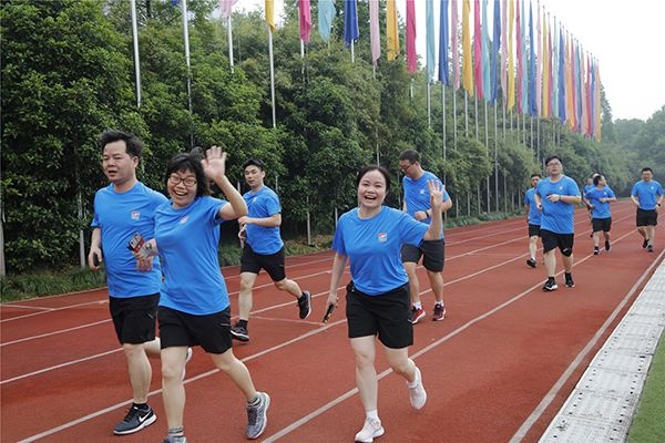 中國巨石副總裁、巨石集團(tuán)總裁楊國明出席啟動(dòng)儀式并宣布中層體能達(dá)標(biāo)活動(dòng)正式啟動(dòng),帶領(lǐng)300多名中層干部完成3000米健康跑。公司還為員工全新打造了環(huán)境舒適、設(shè)備齊全的健身場所,創(chuàng)新舉行“健身開放日”,以“凝心聚力,健身強(qiáng)企”為理念,設(shè)立“集體健康跑”“健身專項(xiàng)課程”“自由活動(dòng)”項(xiàng)目。為了讓全體中層干部得到科學(xué)、專業(yè)的健身指導(dǎo),活動(dòng)當(dāng)日還特邀了專業(yè)健身教練進(jìn)行有氧健身操教學(xué)。廣大中層干部揮汗如雨,挑戰(zhàn)自我極限,通過體能達(dá)標(biāo)測試達(dá)到強(qiáng)健體魄的目的,以更飽滿的精神投入工作。