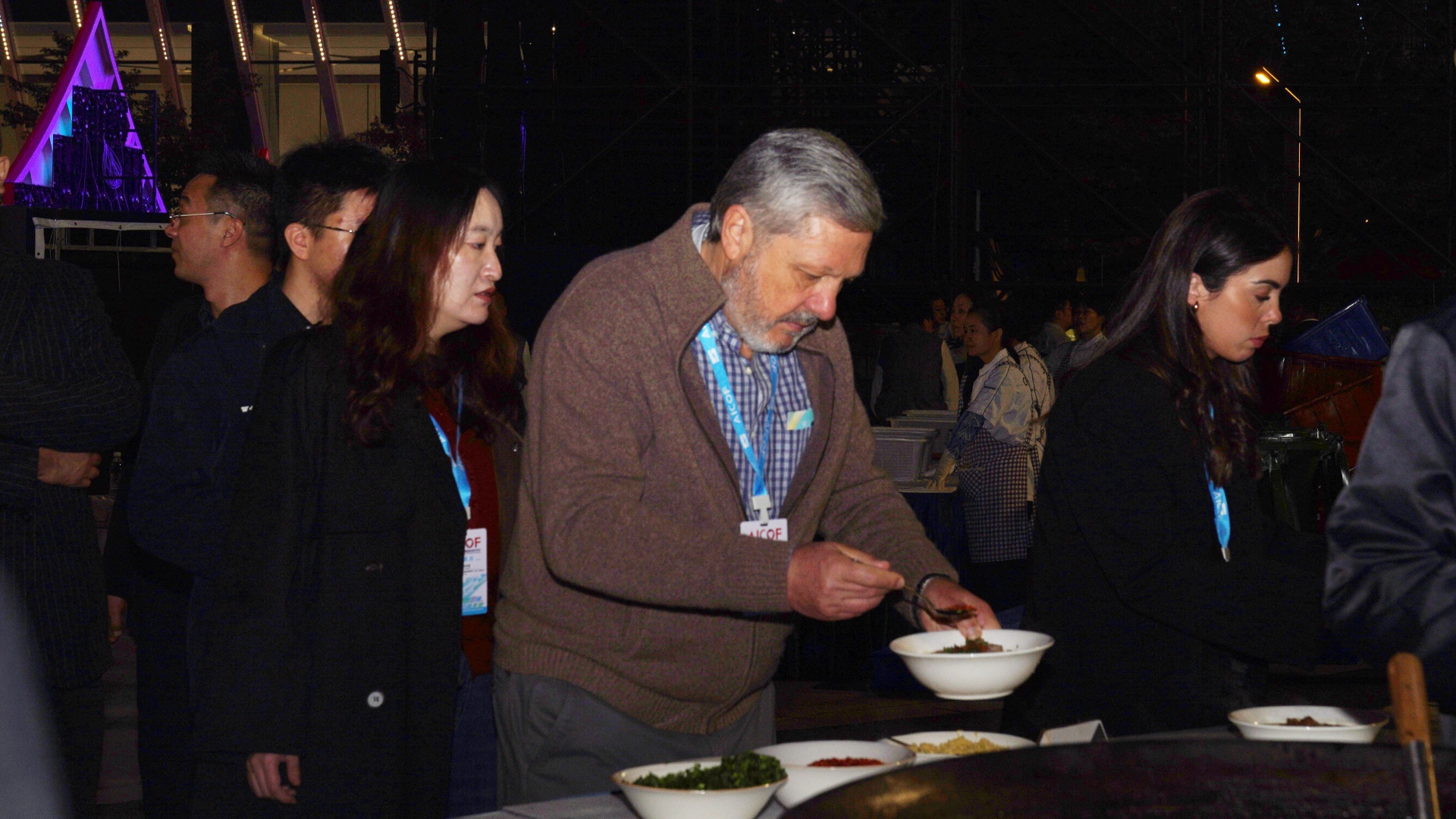 百道菜品、四地大廚,本屆年會(huì)公司用美食構(gòu)建“舌尖上的共同體”。共富菜園的新鮮瓜菜保障食材新鮮;“姥姥的鍋巴茶”彰顯迎客禮節(jié);潮州鹵水拼盤(pán)、酥羊大面、瓦罐湯、特色燒烤、傳統(tǒng)美食等融合了多元口味;同時(shí)通過(guò)顏色標(biāo)簽標(biāo)注熱量等級(jí),讓來(lái)賓能夠輕松掌控?zé)崃繑z入。